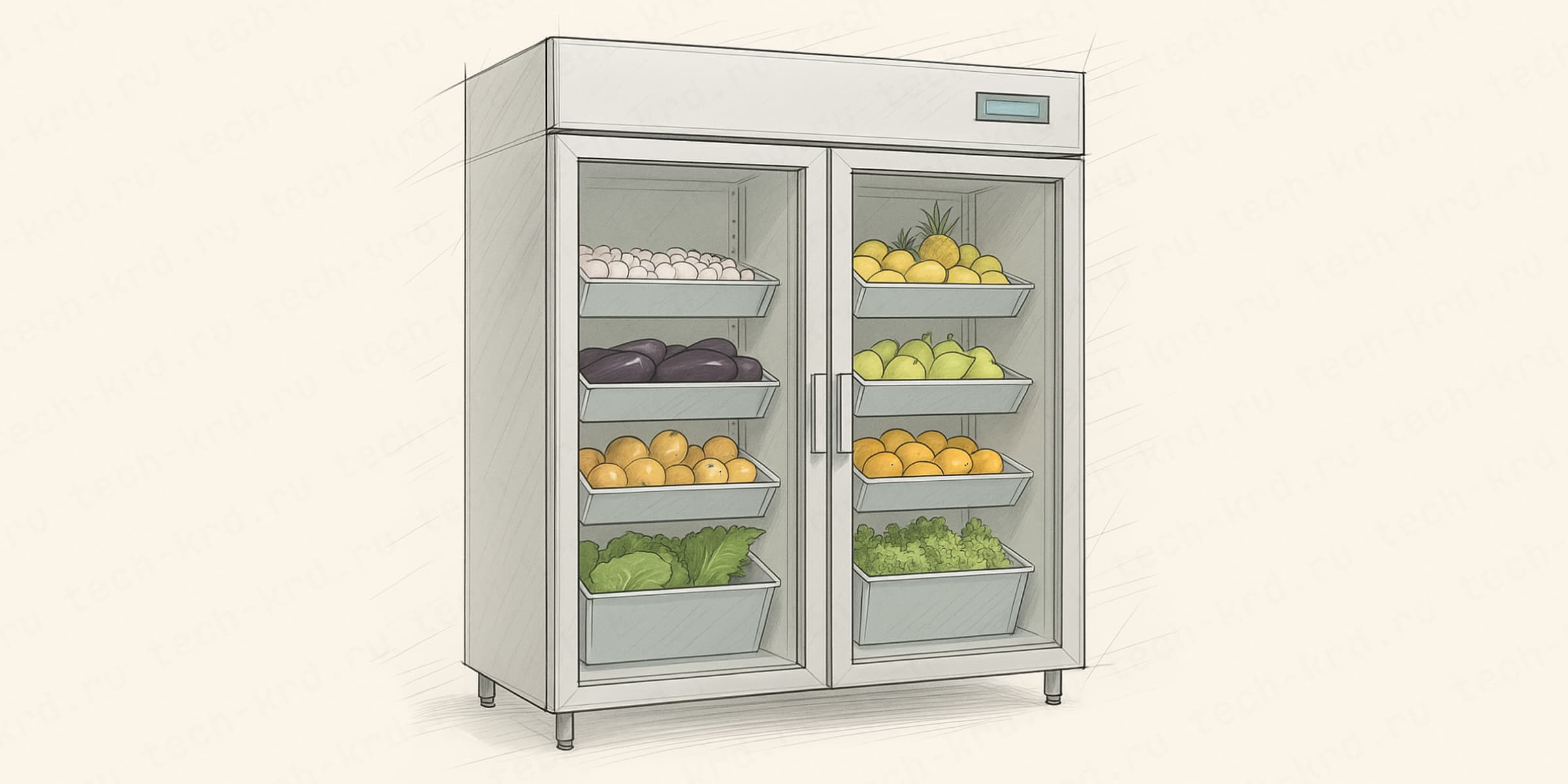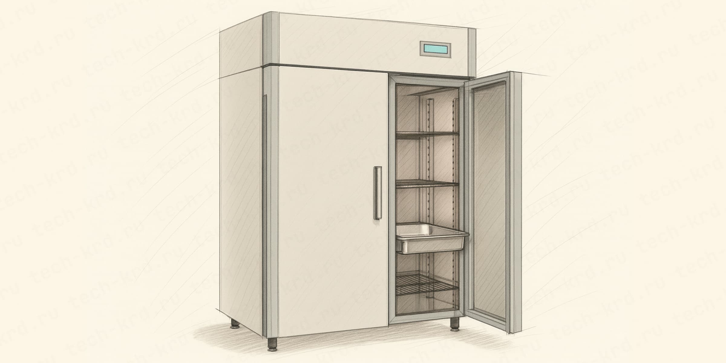 Дальше обратите внимание на климат-класс под условия помещения, тип охлаждения, объём и компоновку под гастроёмкости, тип дверей, энергоэффективность и удобство обслуживания (автооттайка, доступ к конденсатору, съёмные уплотнители).