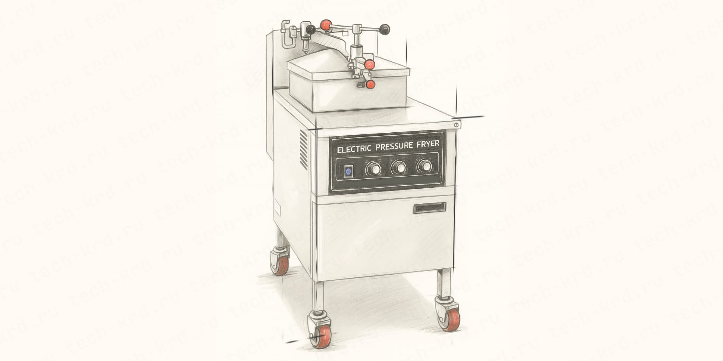 Рабочий температурный режим ниже, чем у открытых фритюрниц: в районе 160–175 °C (вместо 175–190 °C). За счёт давления готовка идёт быстрее при более щадящей температуре: продукт получается с сочной серединой и хрустящей корочкой.