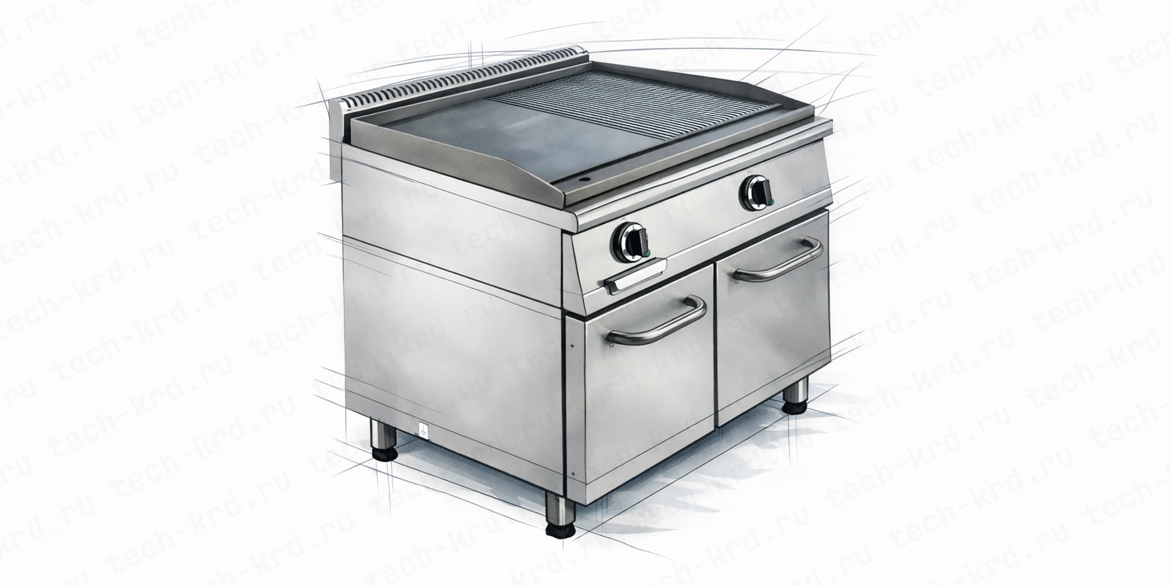 Жарочная поверхность — часто используемое тепловое устройство на профессиональной кухне. На ней готовят быстрее, чем на сковороде, и во многих случаях, удобнее, чем на обычной плите: можно поджаривать сразу несколько порций без смены посуды. Продукт сразу получает равномерный контакт с нагретым металлом, поэтому образуется румяная корочка и меньше теряется влага.
