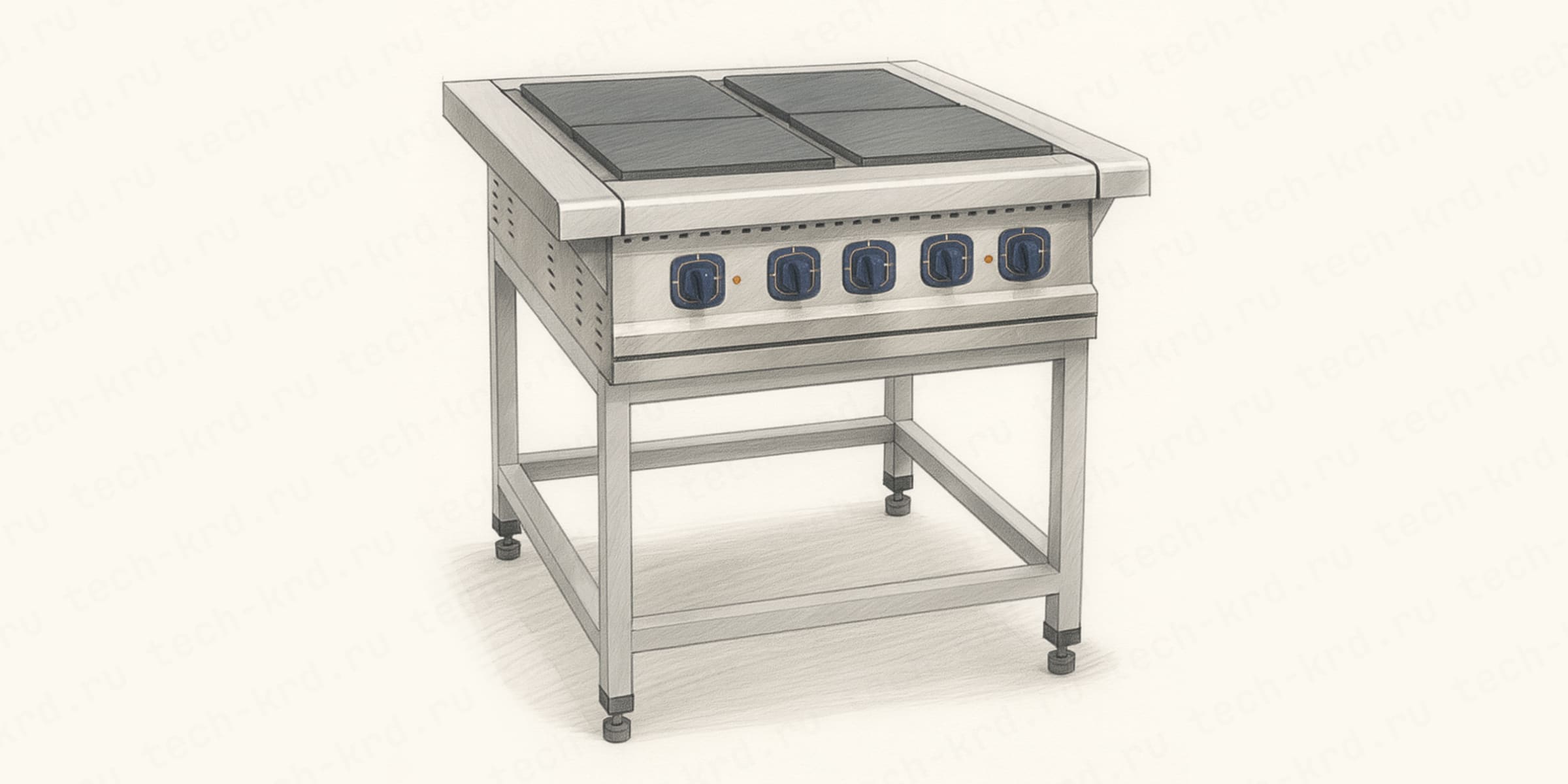 Основное тепловое оборудование, как писали выше, это печь для пиццы. Но для приготовления соусов, обжарки ингредиентов и других горячих блюд в пиццерии не обойтись без профессиональной плиты.