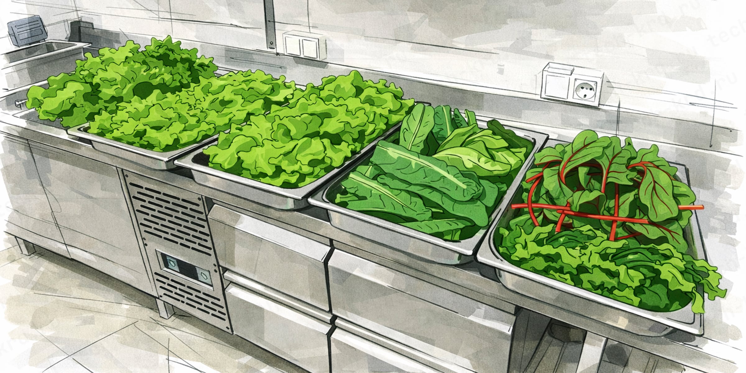 В официальных материалах встречаются и отдельные специальные рекомендации по санитарной обработке, с использованием солевого или уксусного раствора для листовой зелени и листовых овощей, которые используют в блюдах без последующей термической обработки. Но ниже мы разбираем базовую схему обработки овощей и зелени, которая используется в повседневной работе общепита.