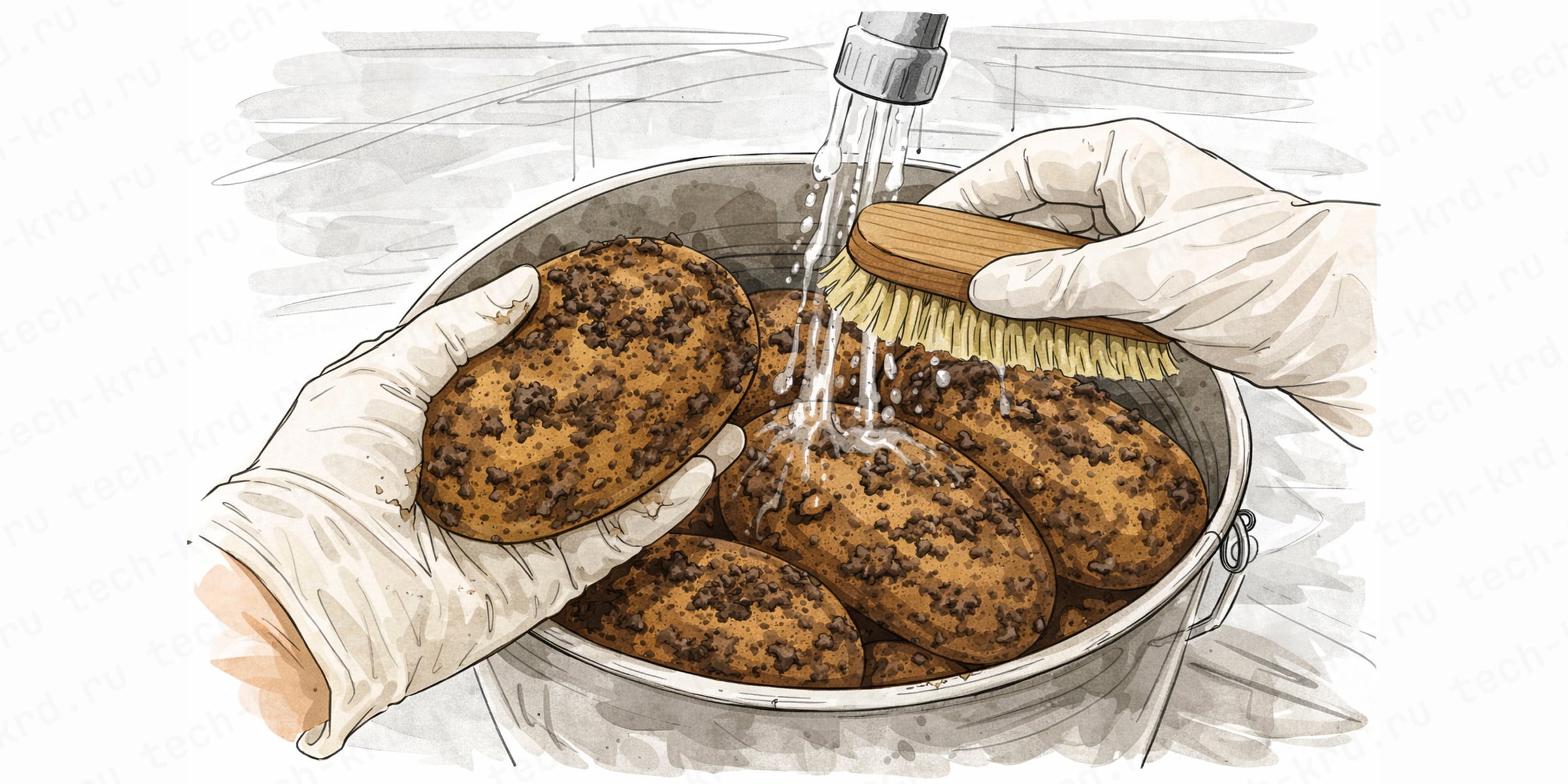 Для кухни это полноценная часть производственного процесса. Такая обработка помогает убрать лишние загрязнения ещё до нарезки, не смешивать сырьё с уже подготовленным продуктом и поддерживать порядок на кухне.