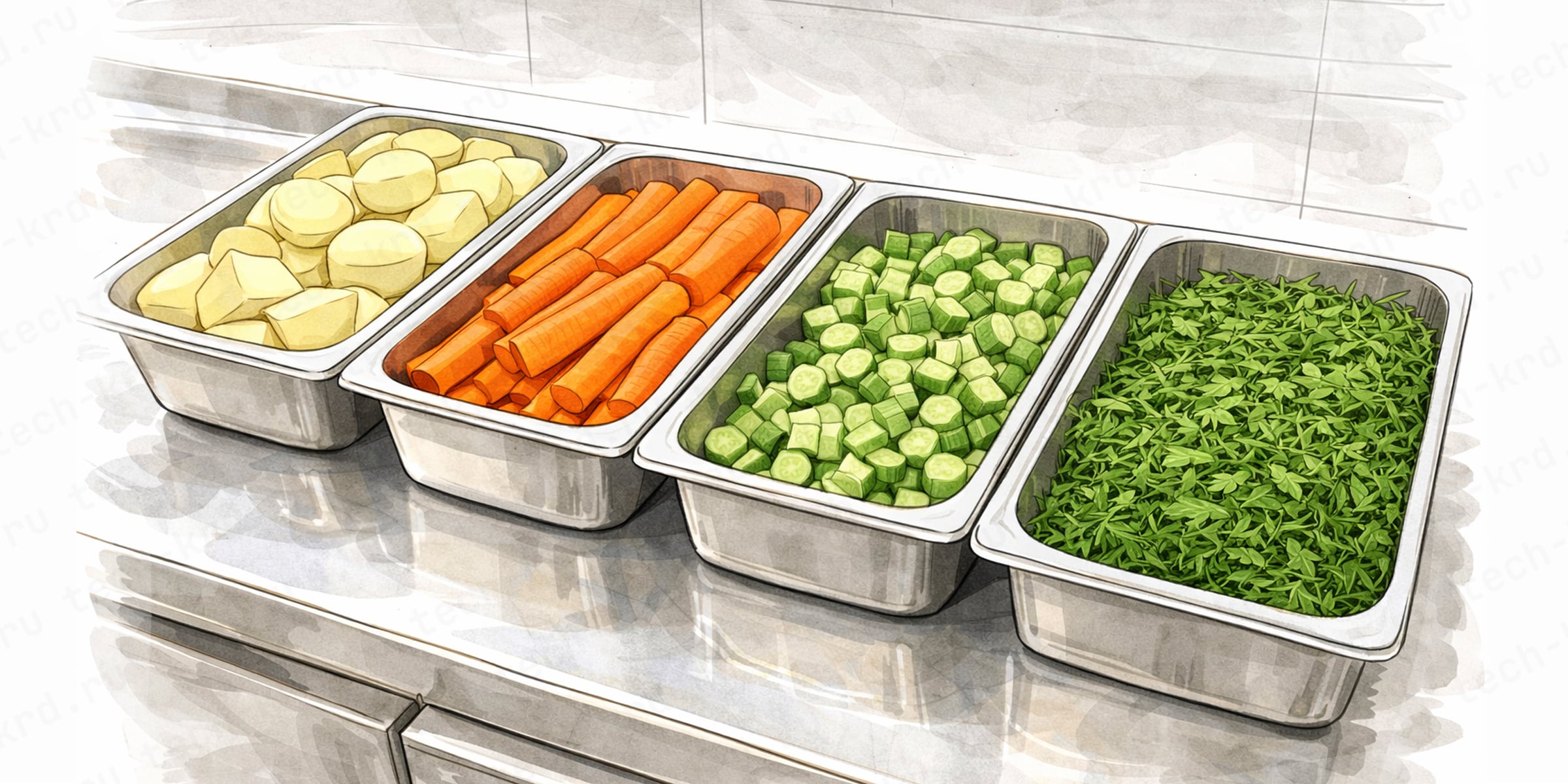 Когда в общепите говорят об обработке овощей и зелени, речь идёт не только о мойке. На практике это более широкий процесс, в который входят: