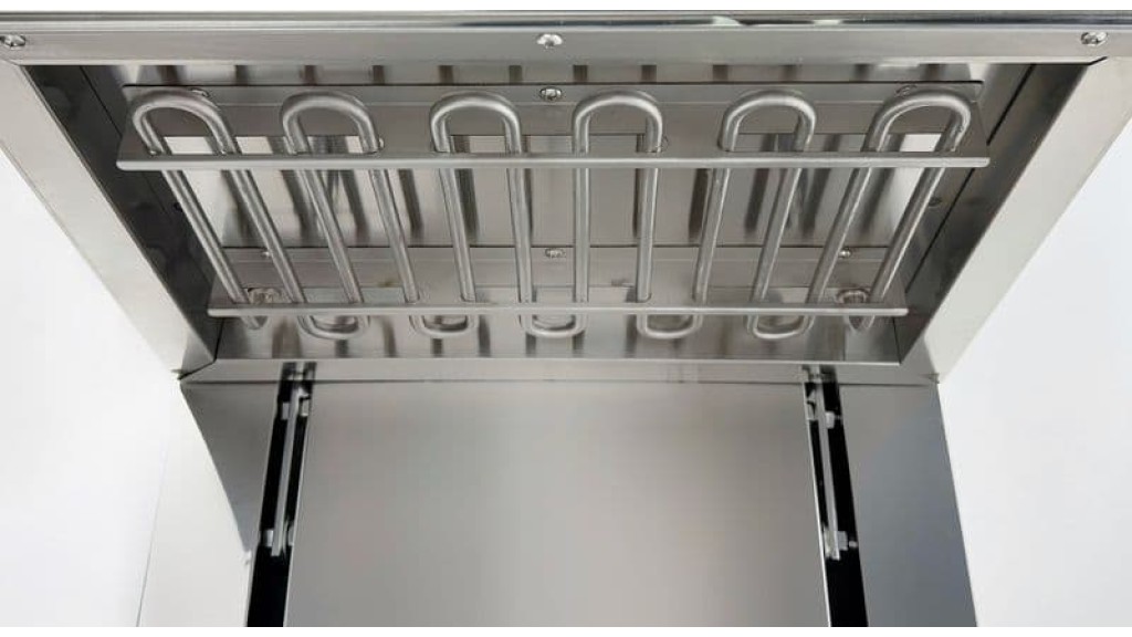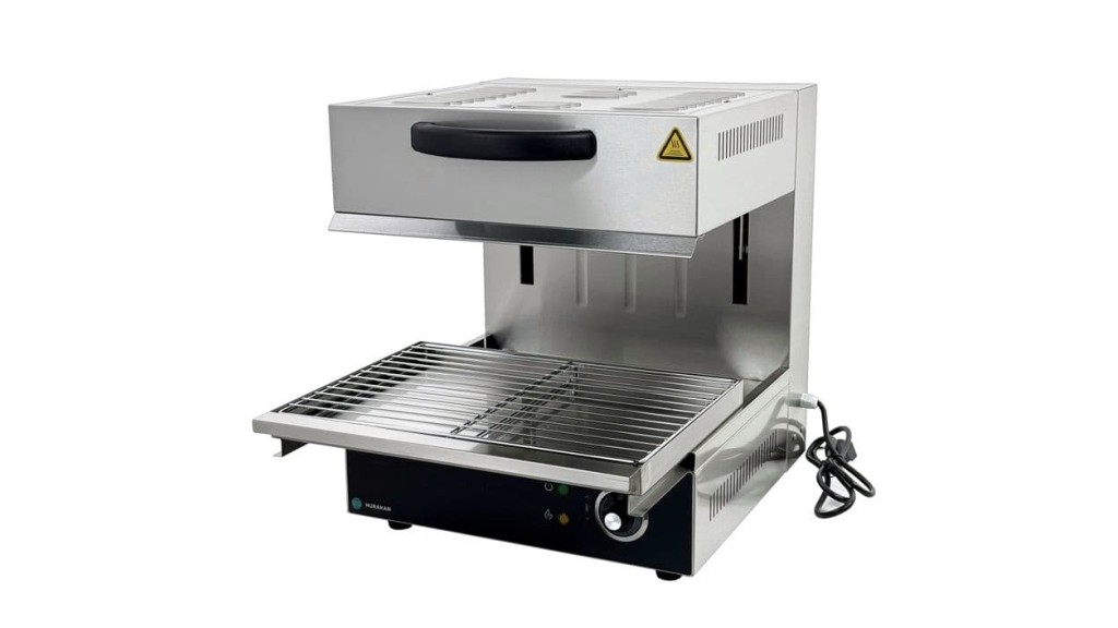 В гриле Hurakan HKN-SAL450MBM продукт размещается на фиксированной решётке, а расстояние от ТЭНа до блюда меняется перемещением подвижной верхней части.