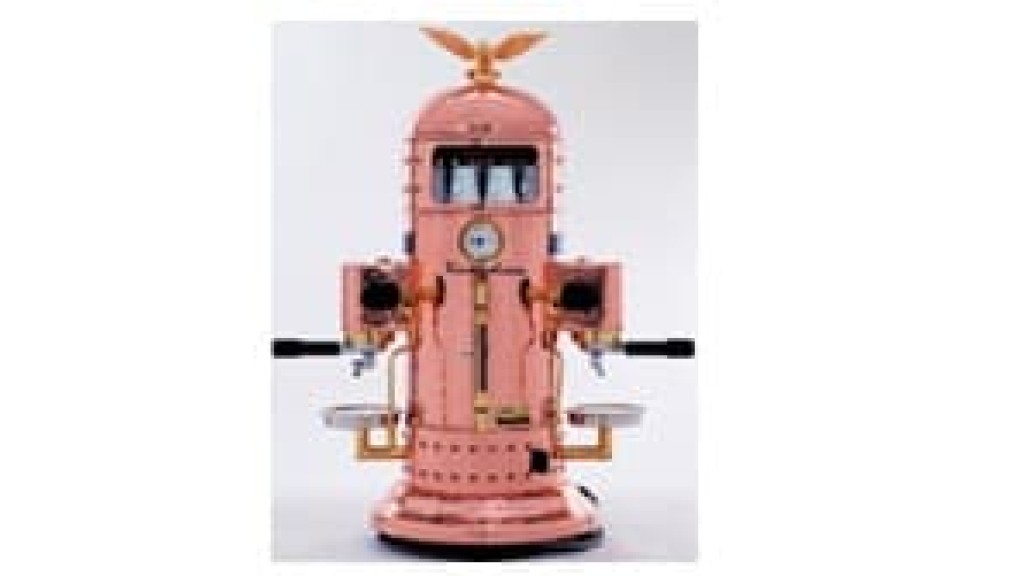 Кофемашина традиционная трехрожковая, полуавтомат предусматривает ручную дозацию, автоуровень воды, подачу пара и подачу кипятка. Остановка производится вручную, путем нажатия кнопки «stop». Объем бойлера - 14,8л. Цвет корпуса - медный. Кофемашина имеет вертикальную форму. На верхушке находится фигурка орла с раскинутыми крыльями. Под «куполом» располагается подогреватель для чашек. Машина имеет манометр с двойной шкалой, клапан горячей воды, клапан пара, фильтродержатель. Дизайн основывается на текстуре, полученной в результате ударов молотка (вручную), что создает легкий эффект перламутра. Стильный старинный дизайн подойдет к современному или классическому интерьеру.