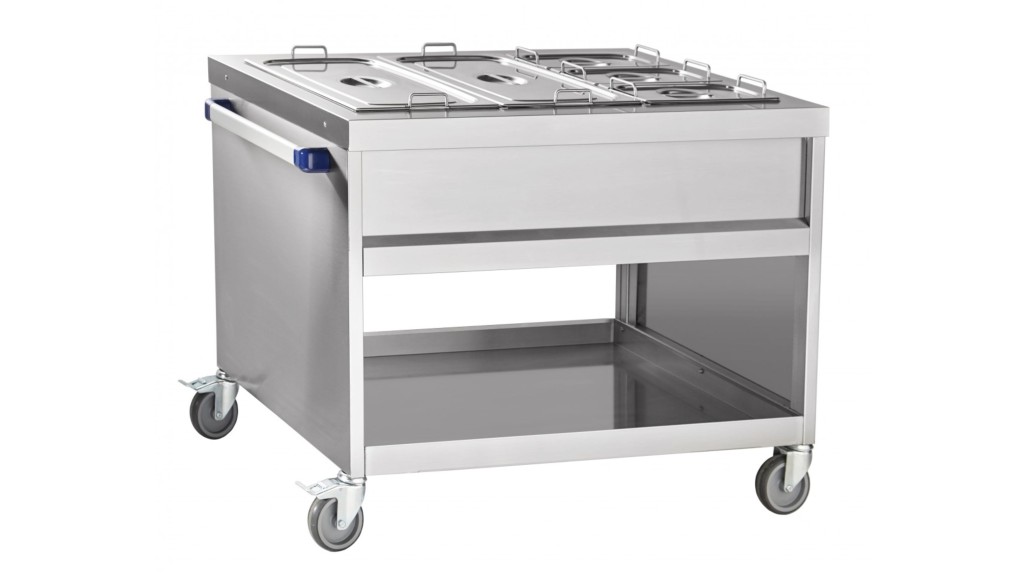 1200 × 670 × 882 (850)мм, электрический мармит ЭМП-70 передвижной, +30…+85 С, ванна 960 × 510 × 180 мм; в комплекте 2х GN 1/1-150, 3x GN 1/1-150, полка с бортом 60 мм; 2 кВт; 230 В.