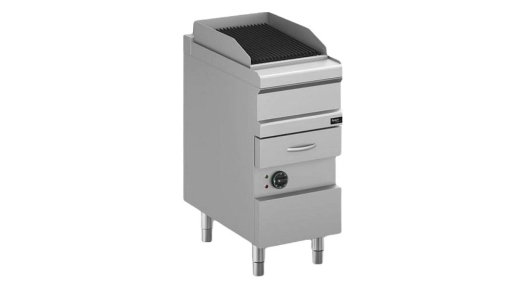 Напольный; на закрытой подставке; одна зона нагрева размером: 640 × 370 мм; чугунная двусторонняя решётка; 380 В; 7 кВт; 400 × 900 × 850 мм; 55 кг.