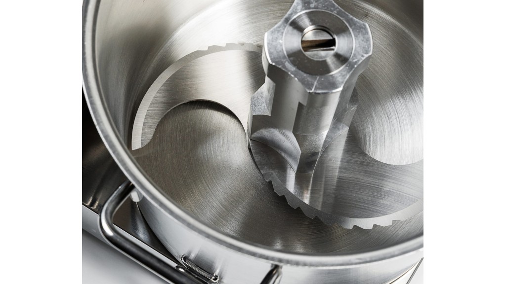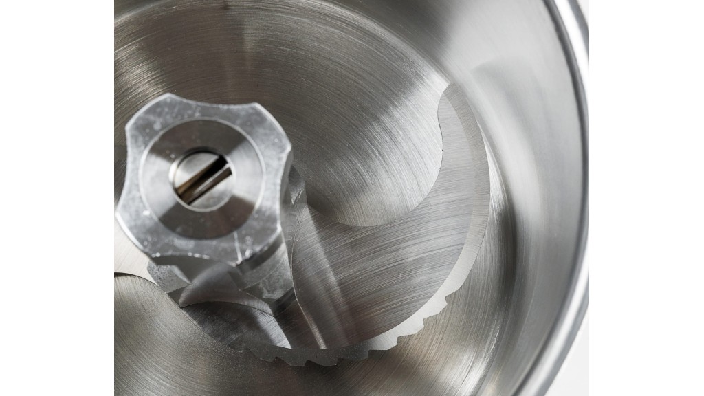 Скорость вращения регулируется вариатором: ниже обороты — крупнее куски. При максимальном вращении продукты измельчаются настолько, что превращаются в однородные массы (муссы, суфле, паштеты).